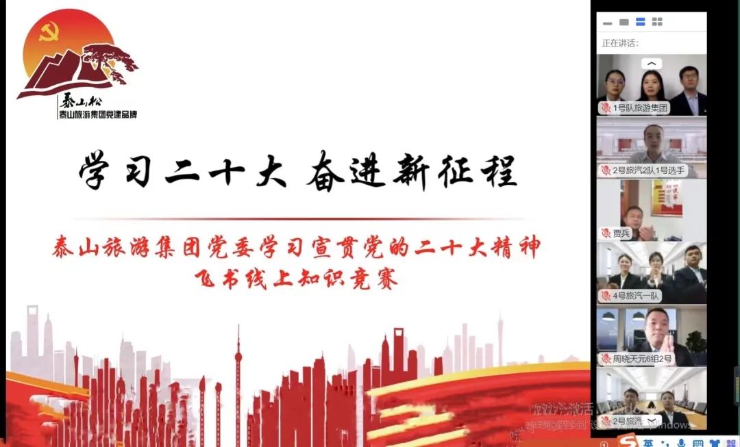 学习贯彻党的二十大精神是泰山旅游集团当前的首要政治任务和头等大事,集团党委紧紧围绕泰山文旅集团关于学习宣传贯彻党的二十大“快、实、深”的要求,迅速掀起学习热潮、营造浓厚氛围。鉴于疫情影响,11月3日下午在飞书线上举办了“学习二十大 奋进新征程”知识竞赛,集团及各子公司6支代表队18名选手进行了多轮精彩激烈的答题,拉开了泰山旅游集团学习宣传贯彻党的二十大精神系列活动的序幕。