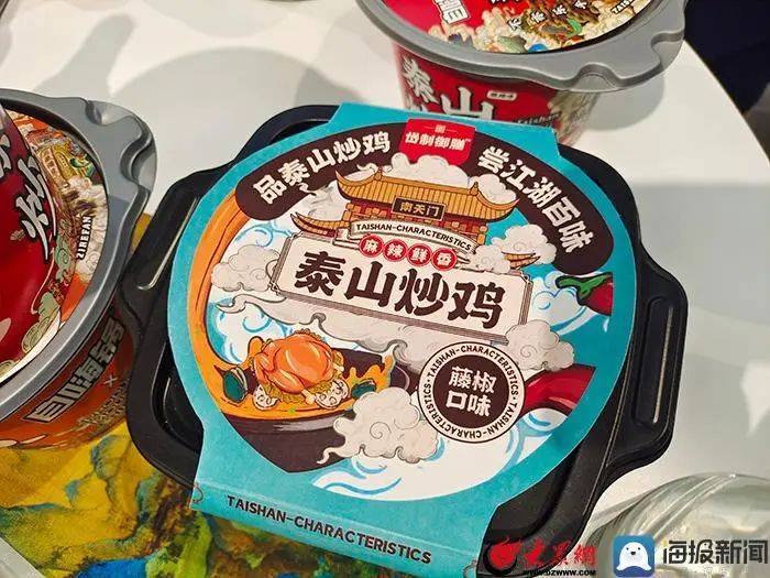 泰山文旅集团投资运营部项目经理刘景阳介绍,泰山文旅集团深度挖掘和整合泰山文化,利用数字科技手段将泰山文化IP+多产业的融合,串珠成链,聚力打造泰山IP语言符号——泰山出品。目前,“泰山出品”推出的泰山炒鸡自热饭、泰山茶、九品贡煎饼等带有泰山元素的文旅商品,以泰山传统文化IP为基础,挖掘提炼泰山文化符号,经过重新设计包装,以全新的表现形式进入线上和线下市场,打造了一系列带有泰山文化IP标签的伴手礼。
