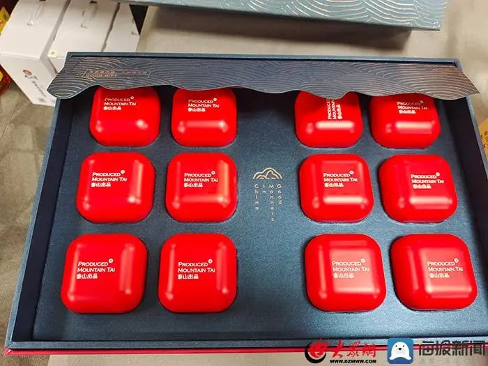 “泰山出品”包装设计的茶叶礼盒(记者 田阳 摄)